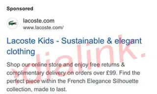 鳄鱼品牌在2025年6月发布的谷歌广告中,针对其儿童服装使用了“鳄鱼儿童——可持续服装”的宣传语。