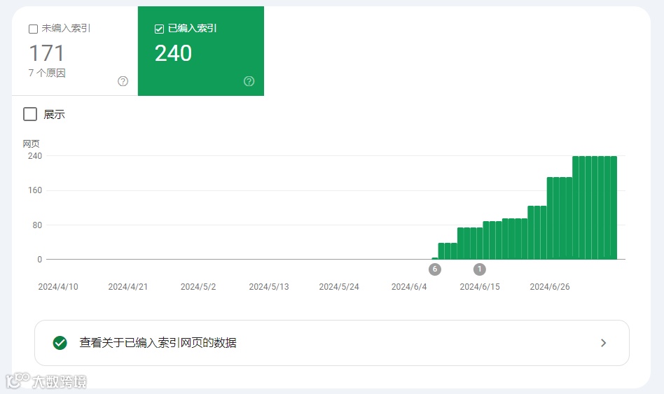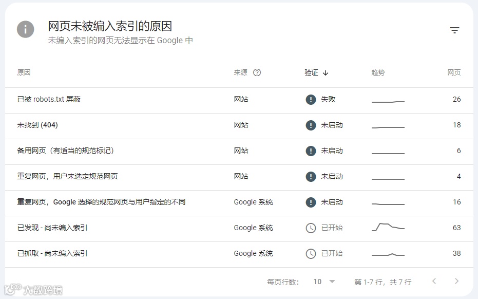 你可以从 Search Console 的网页索引报表中,查看 Google 已建立索引的网页数量,底下也会完整列出哪些网页没被编入索引、以及发生的原因。