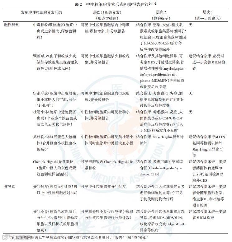 中性粒细胞异常报告,备注可参考层次 1