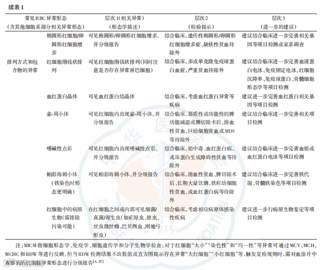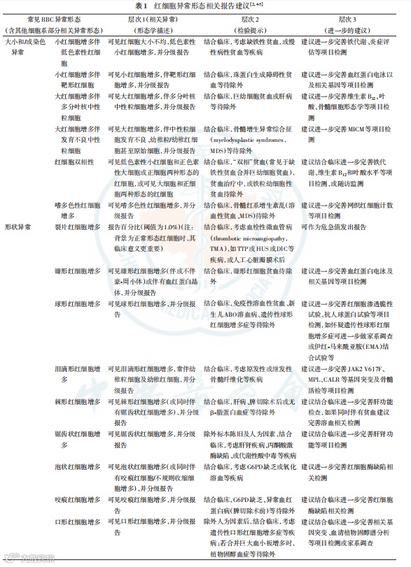 红细胞异常报告,备注可参考层次 1