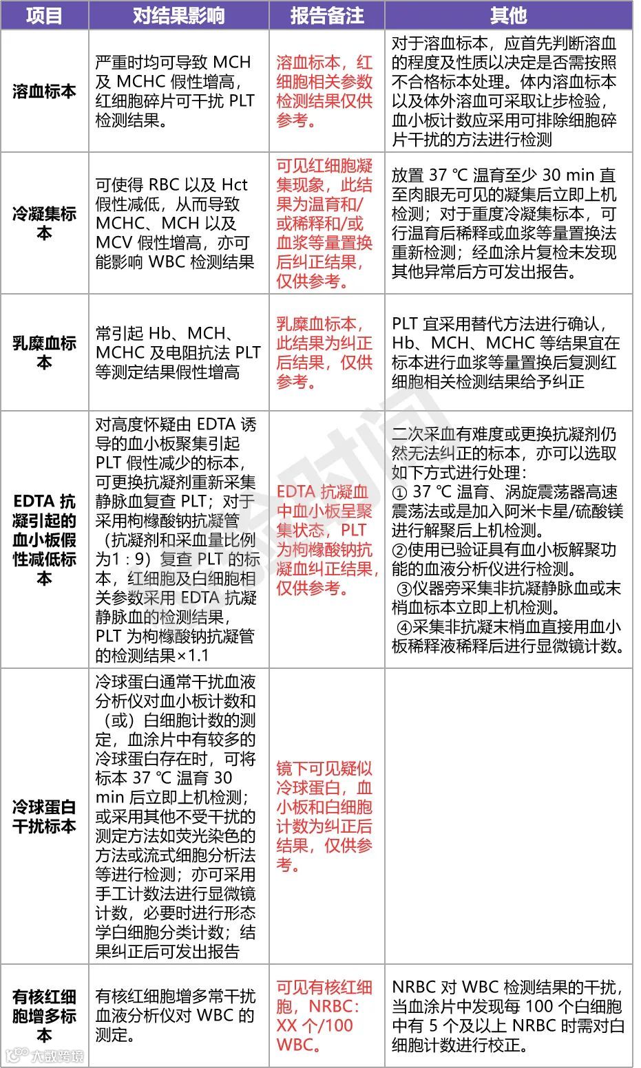 附:血常规各类异常情况的报告备注指南