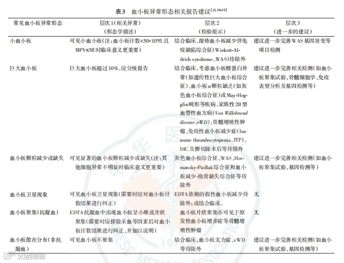 血小板异常报告,备注可参考层次 1