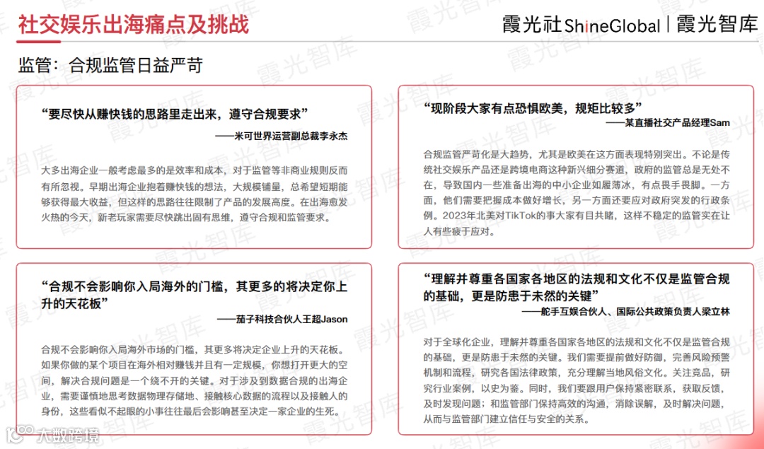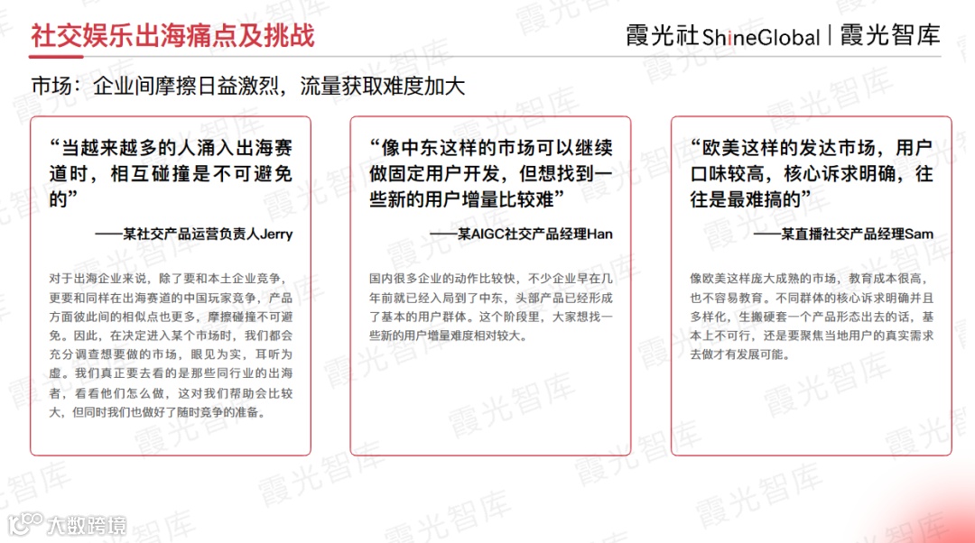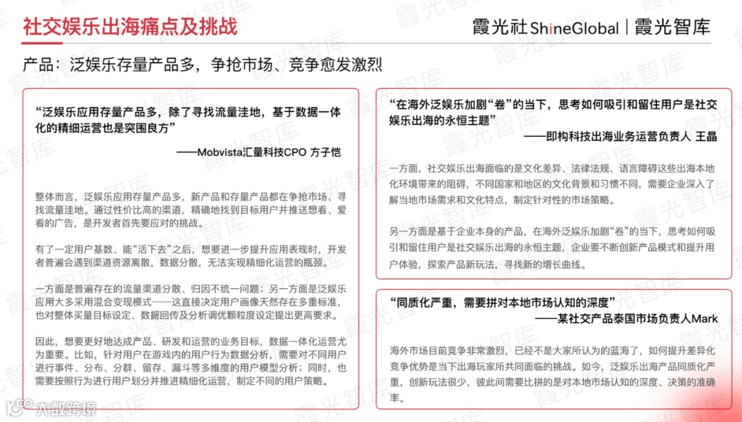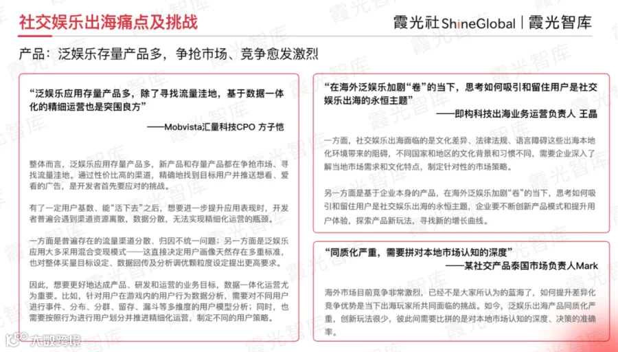 如果您正在了解社交娱乐出海的市场情况和趋势、机会,请前往霞光智库公众号回复“社交研报2024”,即可获取《2024年社交娱乐出海发展趋势洞察报告》。