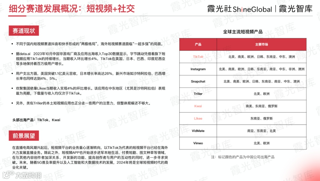 面对文化差异、消费者需求差异等问题,对新兴市场不熟悉的开发者,往往难以切中核心需求,“短视频+社交”作为近年发展最快速的赛道,出海选手基本都面临“一超多强”的局面。