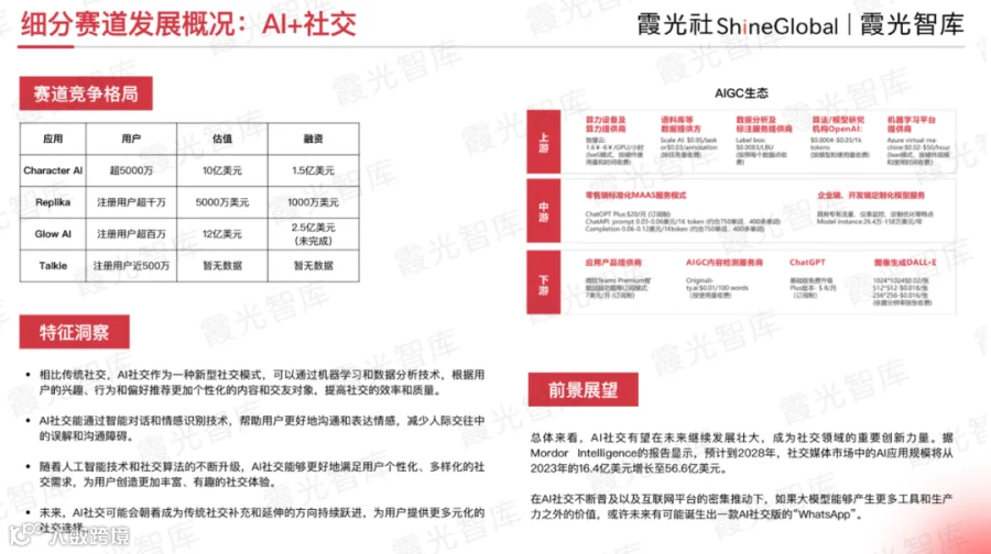 对此,某AIGC社交产品经理Han表示赞同。他强调,赛道未来会更细分,AI是可能相对的大机会,会创造一些新的应用场景和需求。社交娱乐这个赛道发展得相对扎实,出海企业应往细分的地方去挖掘机会。