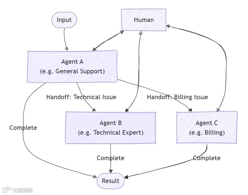 基于上面的3个Agent可以快速创建一个移交编排Workflow: