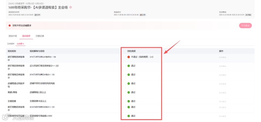 - 进入目标会场页面,确认自身是否符合准入条件。
