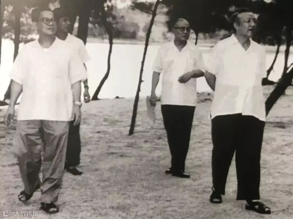 1981年中共中央书记处成员合影。左起:习仲勋、万毅、古牧、杨得志、胡耀邦、万里、姚依林、余秋里、王任重