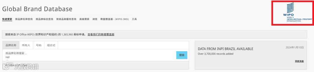 全球品牌数据库是世界知识产权组织(WIPO)提供的免费在线商标检索系统,整合了WIPO自有数据及各缔约国家和地区知识产权局的数据,涵盖马德里体系国际商标、里斯本体系地理标志、《巴黎公约》第六条之三保护的徽记、世界卫生组织国际非专利名称(INNs),以及来自各国的商标信息,总量超过6000万条[k]。