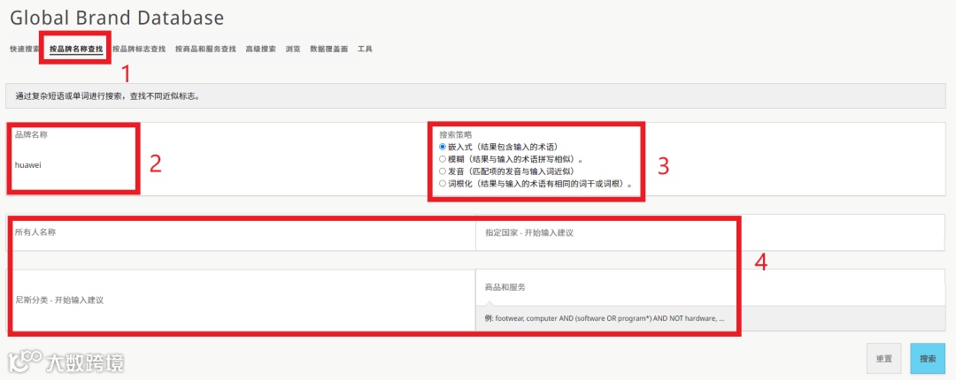 3. 高级搜索 – 品牌名称/所有者/代理人