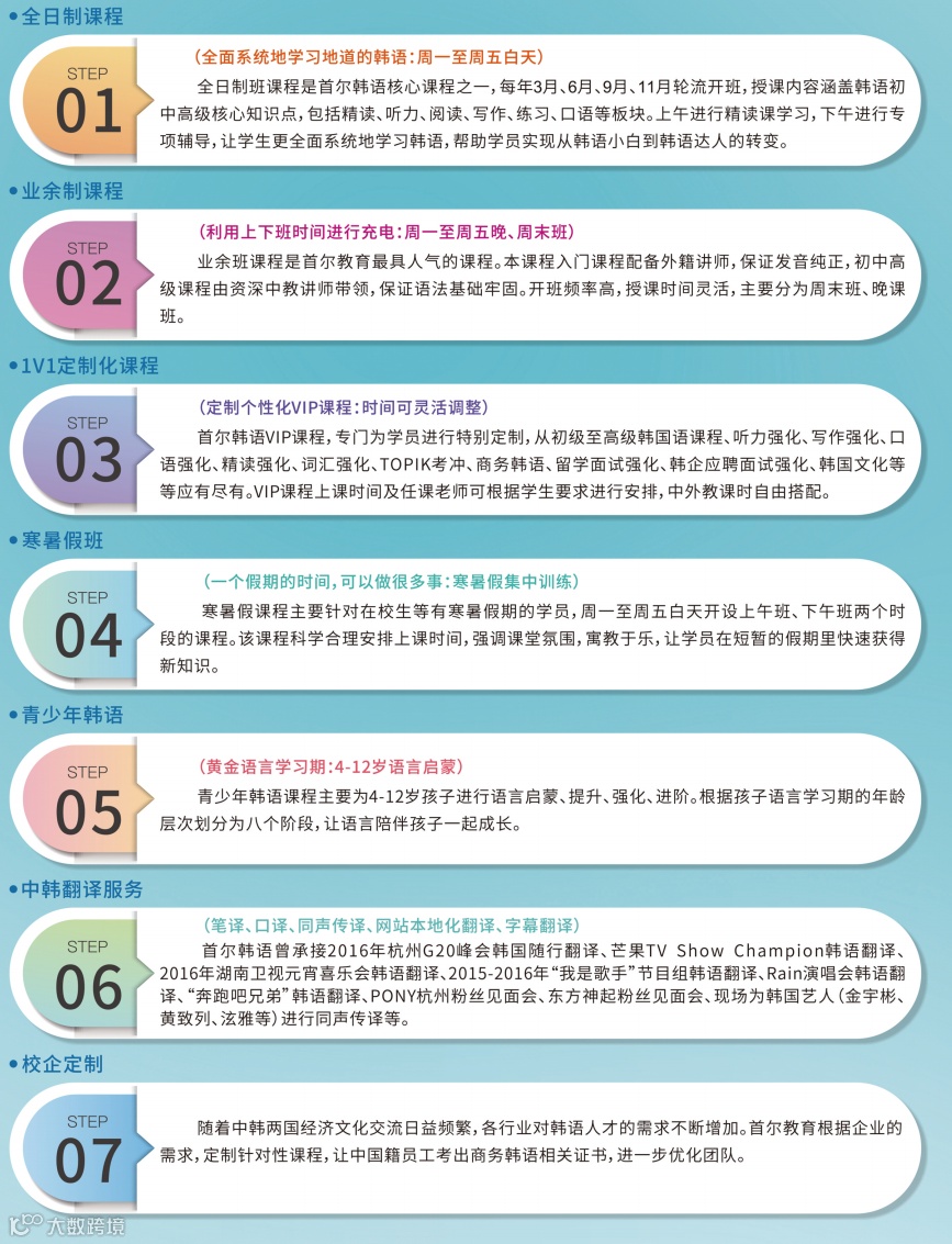 寒暑假班:专为有寒暑假的学员打造。假期集中训练,快速获取韩语新知识。
