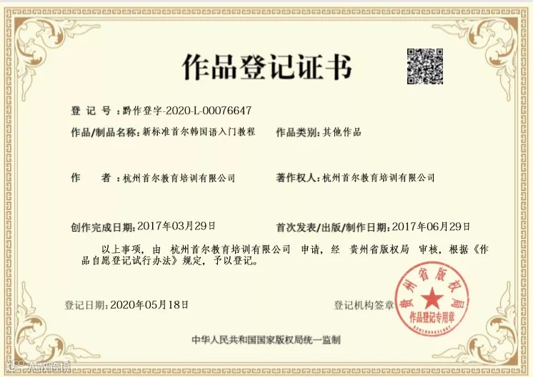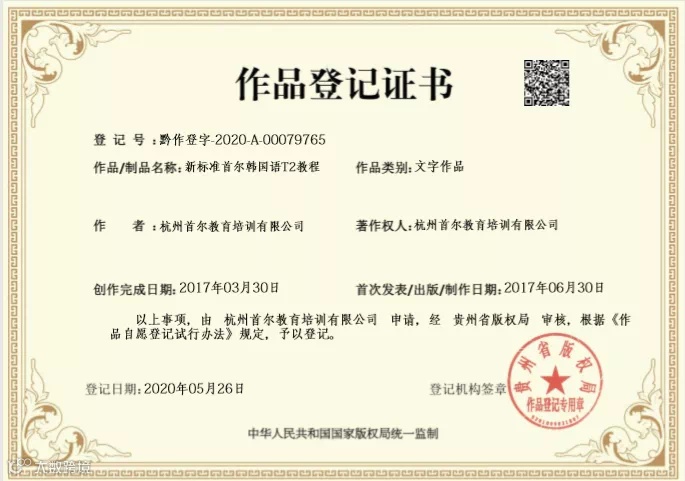 依据韩国 TOPIK 考试中心指导大纲,精心教研出韩语七册教材。2017 年,自研教材投入使用,为学员韩语学习提供有力支持。2019 年,该教材获得中国知识产权认证,凭借专业性与适配性,帮助学员稳步提升韩语水平