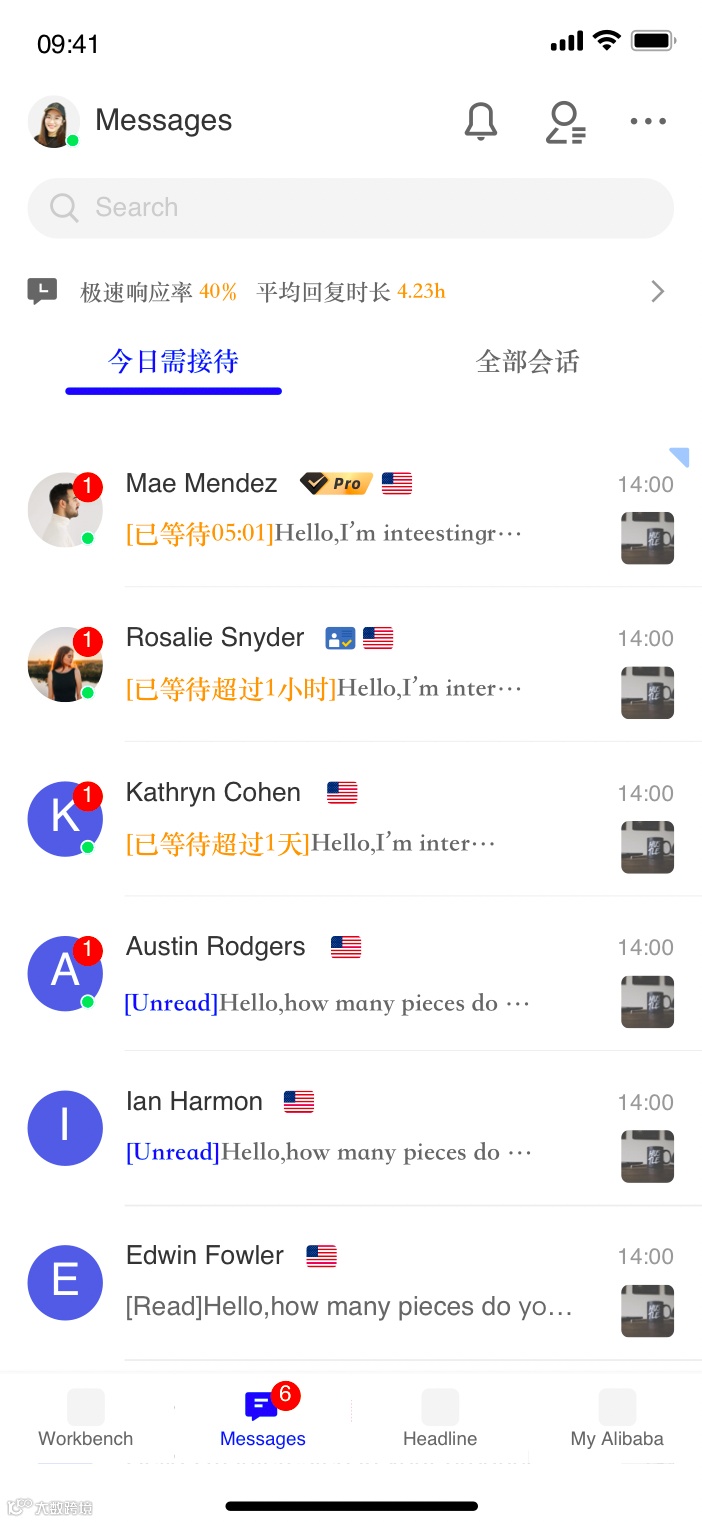 完成以上操作后,还建议业务员关注阿里卖家会话列表中的倒计时提醒、L1+买家标识。出现倒计时的会话、来自L1+优质买家的会话建议优先回复。