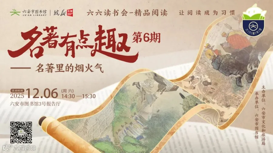 活动详情:本期【六六读书会-精品阅读】主题活动,将和大家一起从轻松的视角拆解经典著作中的饮食密码,从烟火气中读懂名著的温度与真实,让经典著作变得“可感可尝”。