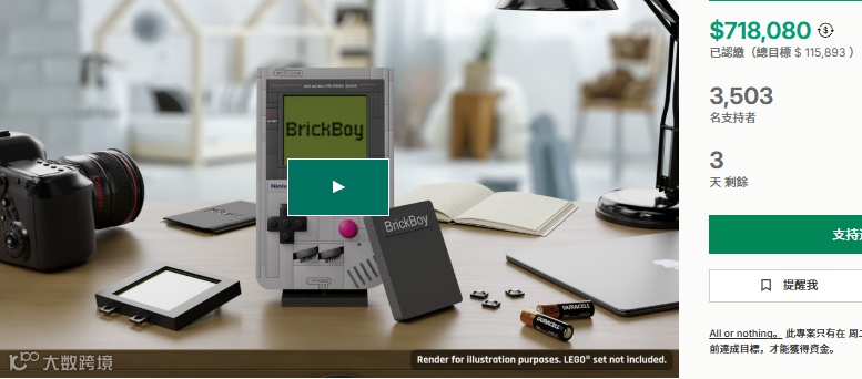 BrickBoy在Kickstarter上表现强劲截至11月29日已筹71.8万美金,支持者约3500名,众筹剩余天数很短。项目计划2026年3月开始向支持者发货;