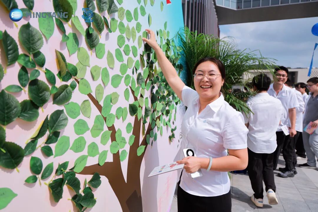 活动现场洋溢着热烈欢快的氛围,员工们在“共赢灯”前齐心导电,“绿色创新投掷”中默契投球,“贡献者征途”里互助闯关,“感谢卡漂流计划”前传递祝福,“全球使命贴”前共筑愿景。欢声笑语间,企业文化与趣味互动深度融合,明阳人团结协作、创新奋进的精神尽显,为32周年华诞注入满满活力。