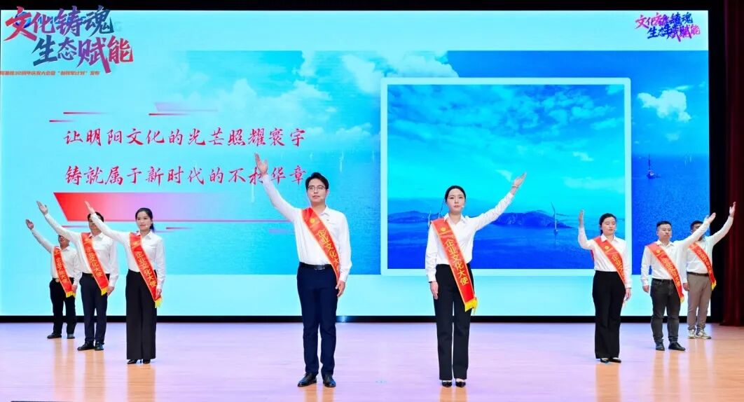 庆典当天下午,为进一步交流思想,在“文化铸魂活力焕新”主题座谈会上,集团高管、各大区领导、文化大使代表齐聚一堂,纷纷结合自身的岗位职责、对明阳文化的理解和感悟,以及对集团文化建设方向的意见和建议,提出自己的思考。通过文化座谈,凝聚发展共识,激活以使命为核、奋斗为魂的文化基因,让文化成为驱动战略落地的深层密码。