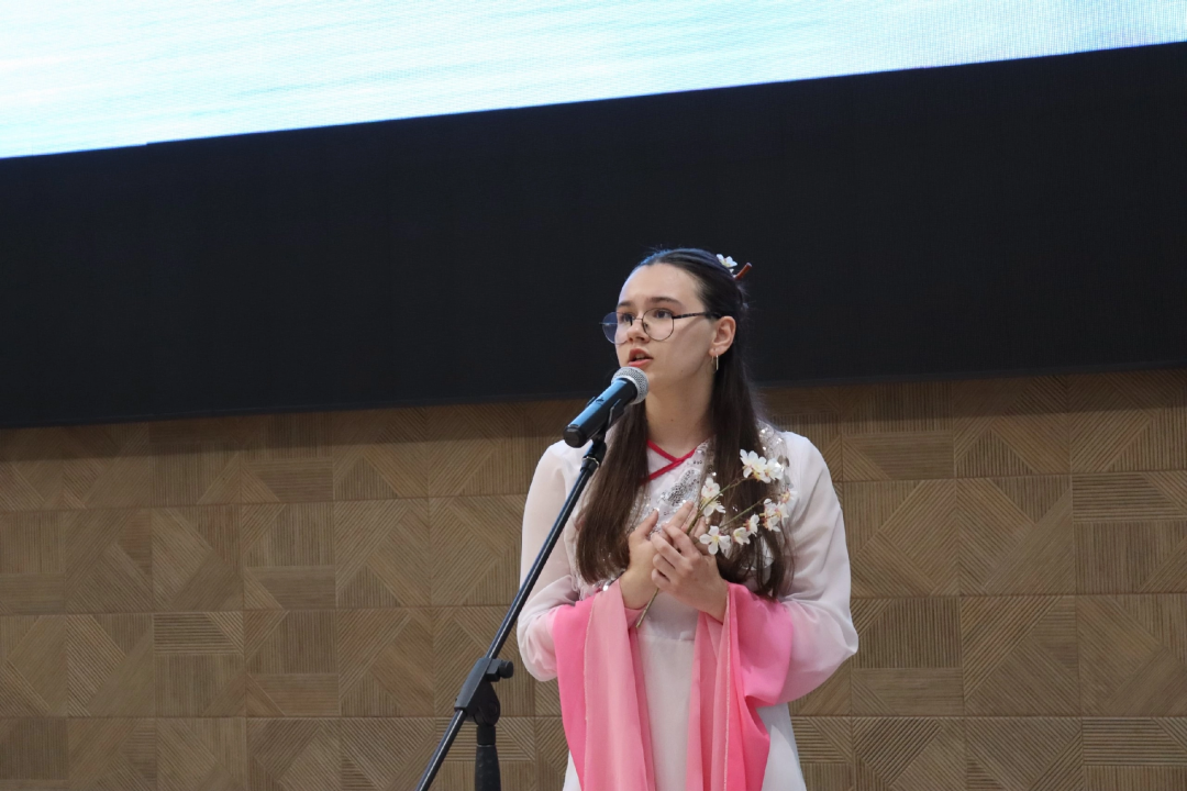此次比赛汇聚了全俄各赛区脱颖而出的17位优秀选手,竞争十分激烈。年仅14岁的阿纳斯塔西娅虽初次登上“汉语桥”总决赛的舞台,却凭借扎实的中文功底、流畅的语言表达和富有才情的文艺表演,在主题演讲、语言和文化知识比拼以及中华才艺环节稳扎稳打,最终以总分第四名的优异成绩斩获二等奖,为新西大孔院再添荣誉!