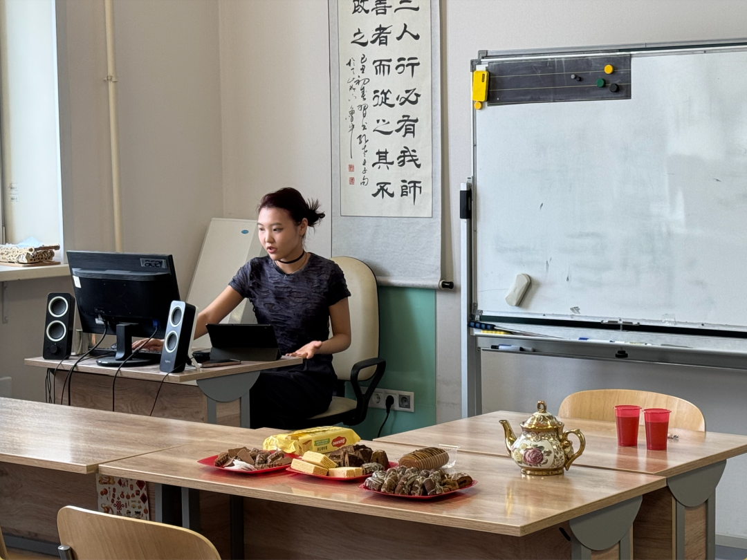 本次活动分为三个部分:首先,爱珂主席向大家介绍了麻将的历史和文化意义,外语系四年级学生达希玛·达姆迪诺娃向大家介绍了麻将的演变和传播。接着,曾老师逐个介绍了麻将中各种牌的名称和基本规则。最后,大家一起沉浸式体验“吃碰杠胡”的中华传统桌游。