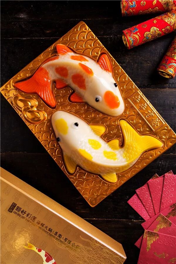 为色香俱全,料正味浓;鲤鱼跃龙门年糕,色彩斑斓的鲤鱼形年糕,让你在欣赏匠心之作的同时品味清新爽滑,齿颊留香。