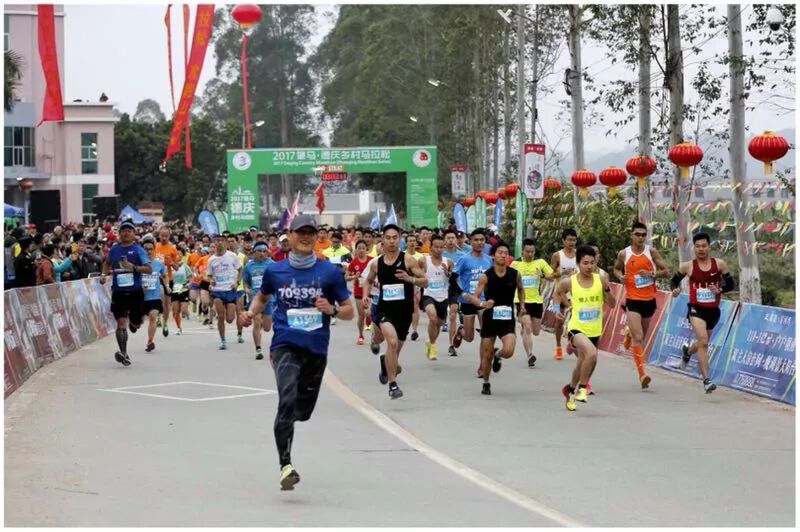 12月17日上午7:30,德庆县新农村示范片迎来了5000多名马拉松选手,近万名由本地乡亲和外来宾客构成的参与者,共同见证了广东首个乡村半程马拉松——2017肇马·德庆乡村马拉松。本次比赛由肇庆市人民政府主办,德庆县人民政府、广州宽洋体育产业有限公司承办,为中国田径协会认证赛事。赛事设乡村半马跑(21.0975公里)和山水欢乐跑(5公里)两个项目。