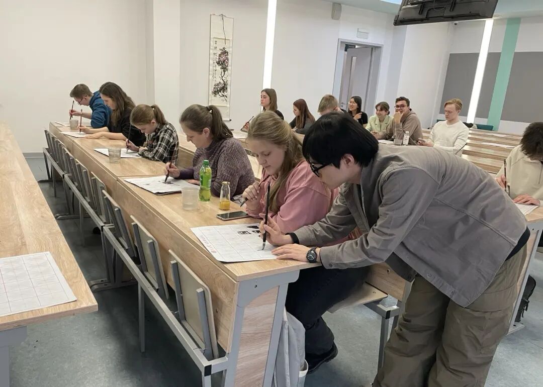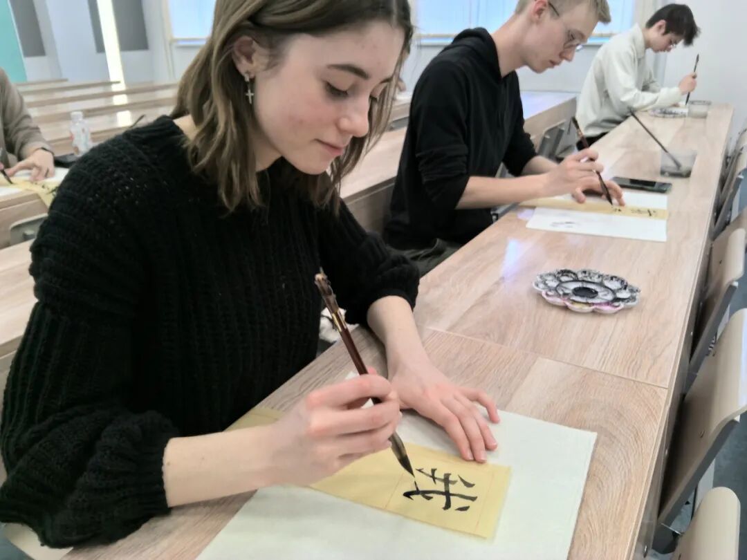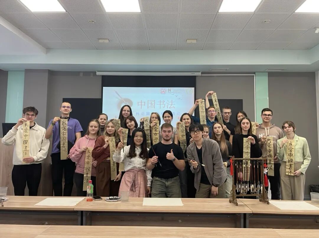当地时间2025年2月22日14:30,俄罗斯新西伯利亚国立大学孔子学院(以下简称“新西大孔院”)在该校人文学院外语周框架下成功举办中国书法体验活动。本次活动用笔墨架起了一座连接中俄文化的桥梁,吸引了来自校内外的20余名学生积极参与,共同感受中国书法的风采。
