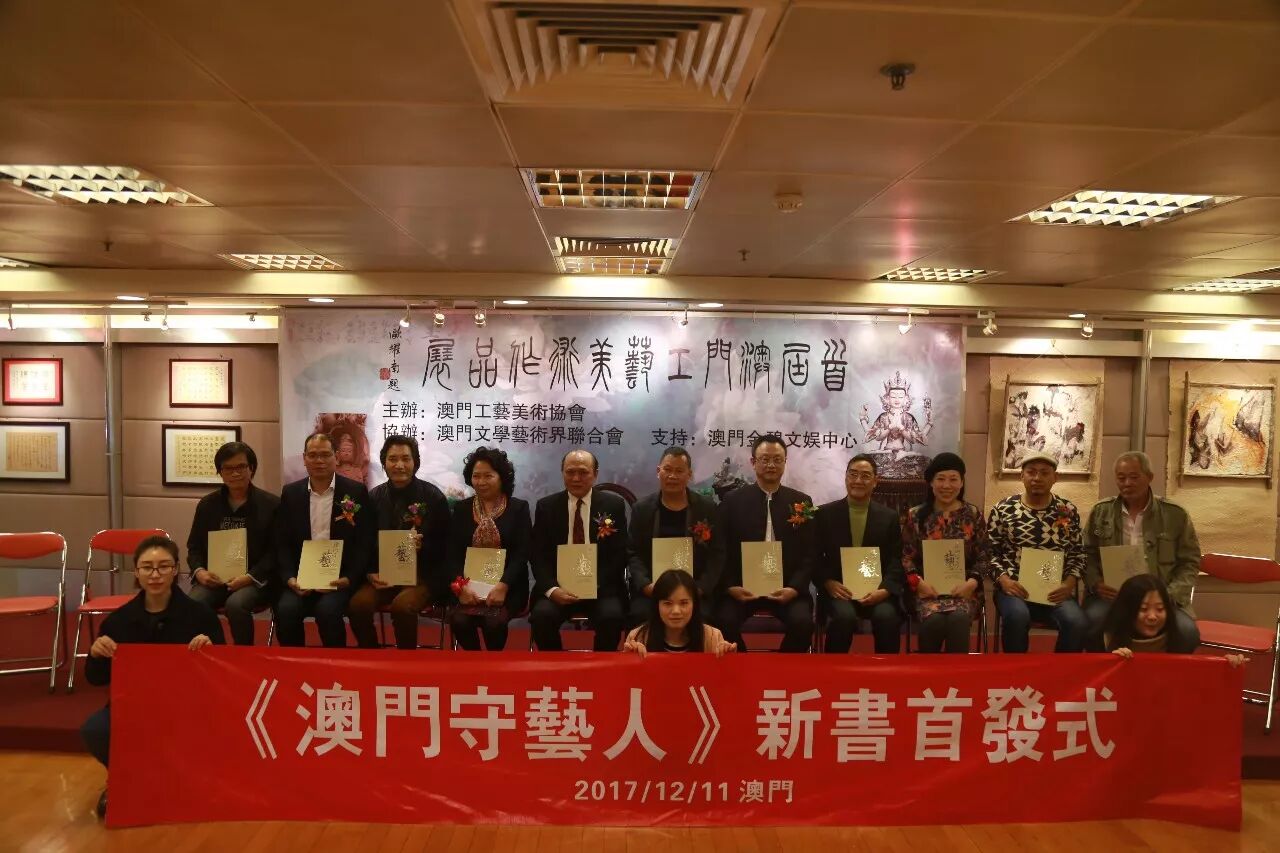 由澳门中西文化创意产业促进会立项、澳门特区政府文化局资助的新书《澳门守艺人》于12月11日在金碧文娱中心举行首发式。文化局文化创意产业促进厅 、文化产业委员会秘书长王劲秋,澳门基金会主席吴志良代表梁雅桃,文化遗产委员会秘书长蔡志雄,澳门工艺美术协会会长杜冰,澳门中西文化创意产业促进会会长徐凌志、理事长李嘉曾,澳葡社会科学出版社社长蔡强,澳门工艺美术家梁晚年、吴志伟、李宗兴、曾德衡等出席首发式。
