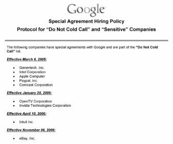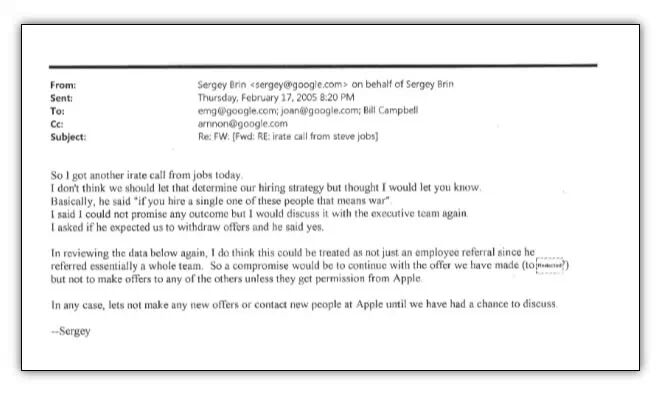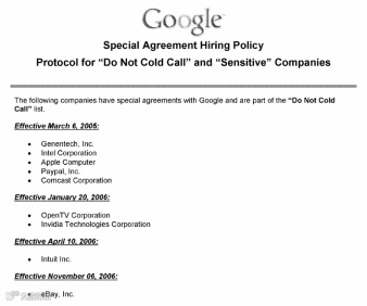 (3) 与Google等硅谷巨头订立“不相互挖人”协议案(Anti-Poaching Case)