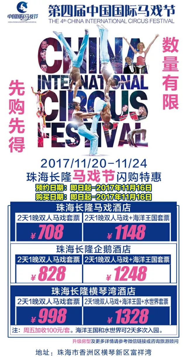 ●国际马戏城马戏节普通座门票2张(限入住当天使用);