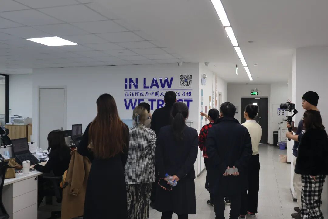 会前,在百事通冯丽的带领下,参观了法律服务中心、大数据展示厅,以及公司文化和荣誉展示区。百事通成立于2006年,一直秉承“让法律成为中国人的生活习惯”的发展愿景,专注于科技赋能法律服务的创新实践。在参观讲解中,领导们对百事通的“法律+科技+运营”的服务模式有了更深入的了解。
