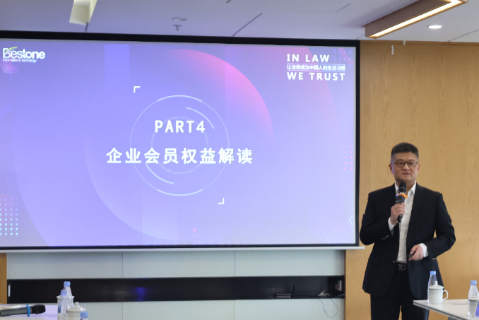 随后,百事通司家企部负责人金振华、品维华东区负责人李亚茹、市场部陆怡分别从会员服务业务、品维知识产权业务及百事通的发展历程作了详细且深入的介绍,使与会者深入了解了百事通18年来在法律服务领域的丰富经验,特别是其为中小企业量身定制的服务年框和知识产权保护方案。这些服务不仅帮助企业降低法律风险,还为其提供了全方位的法律支持,助力企业在激烈的市场竞争中稳步前行。