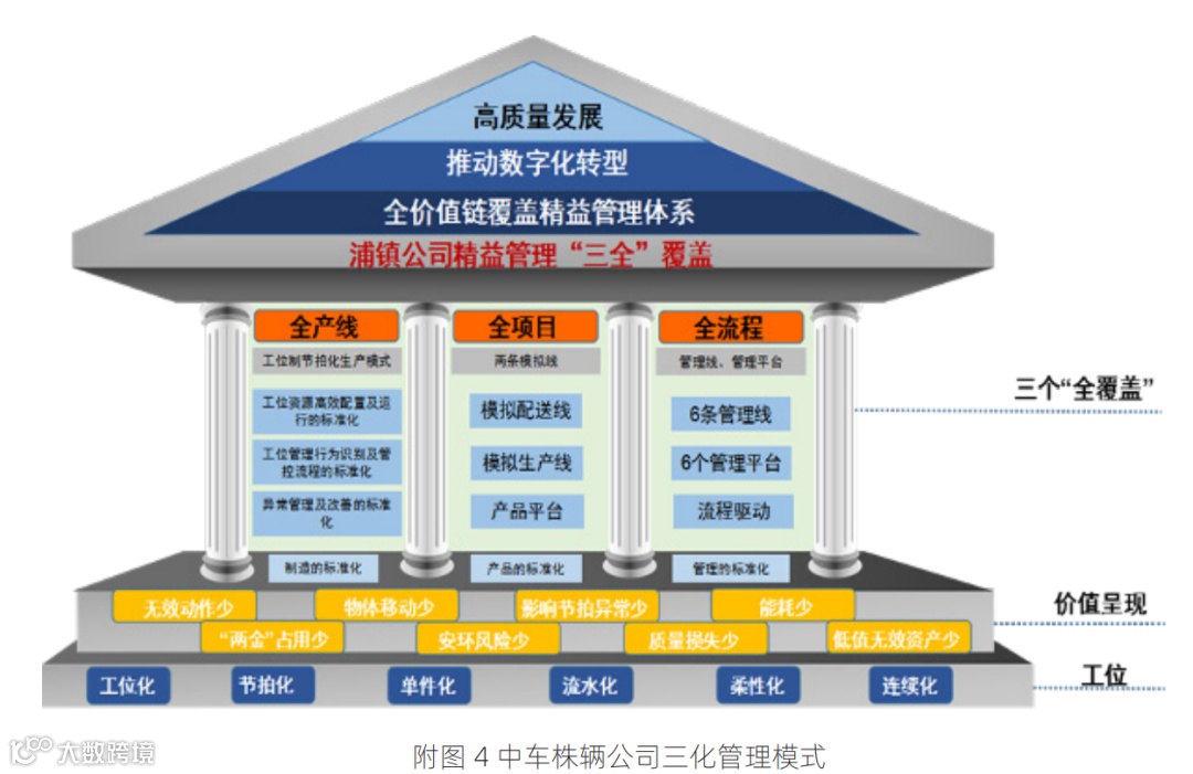 中车南京浦镇车辆有限公司从“全产线”、“全流程”和“全项目”三个方 面开展精益数字化探索实践。在“全产线”方面,公司运用数字化智能制造技术, 推进作业现场全要素的可视化、透明化和在线化管理,构建了包括城轨总装、转 向架组装在内的六条数字化生产线,显著提升了生产效率并减少了人员依赖。在 “全项目”层面,通过搭建数字化管理平台,实现了跨部门的高效协同工作,并 引入“三新”项点管理模块,确保项目风险管理的闭环运行,促进了信息共享与 流程优化。在“全流程”管理上,根据业务实施逻辑,细分场景、动作与要素, 推进市场、设计、工艺、采购、质量、资产及安全管理的标准化与数字化。公司 梳理出了 228 项一级管理动作,并明确了各项动作的标准执行时间和相关属性, 实现了全价值链项目数字化运营语言的统一。精益数字化的实施让平台产品图纸借用率提高至 90%,产品设计周期缩短近 2 个月,工艺设计周期缩短近 1 个月;新造城轨项目的车体焊接产线节拍时间由 3 小时优化至 2 小时,日产能由 7 辆提升至 10 辆;总装产线节拍时间由 3.5 小 时优化至 2.5 小时,日产能 5.5 辆提升至 7.5 辆;城轨车辆的生产制造周期和人 员投入也不断缩短:分厂人员投入减少 220 人,制造周期由 58 天缩短至 47 天, 节拍兑现率稳定在 90% 以上。