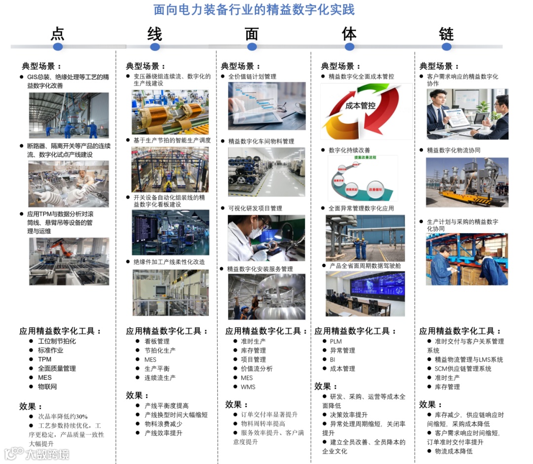 在推动新型工业与构建现代化产业体系的宏伟蓝图中,制造业数字化转型是推进新型工业化、建设现代化产业体系的重要举措。对制造企业而言,数字化转 型已成为关乎生存和长远发展的“必修课”,但是转型的过程仍然充满挑战。精益数字化管理模式是企业高效实施数字化转型的重要基础与手段。精益数字化的核心思想是将精益的思维与数字化技术进行深度融合,用于支撑企业全价 值链活动中。企业首先需要通过精益管理来得到业务生产与运营管理的最佳实践 方式,再利用数字化的手段将这些最佳实践固化到业务全生命周期中,达到缩短交货周期、减低成本、提高效率、提升质量等成效,实现全价值链经营管理数字 化转型成效最大化。精益数字化的实施既能为企业带来效率提升、利润增长的显 性收益,也能带来管理能力升级、实现长远发展的隐性收益。此外,精益数字化 对于打造供需对接、全链协同、价值驱动的产业数字化转型生态具有至关重要的作用。面对市场环境带来的严峻挑战,越来越多的企业深刻认识到精益数字化对于 提升企业提升竞争力的关键作用,积极加入到精益数字化的实施行列中,经过不 断探索与实践取得了显著成效。这些宝贵的实践经验也为形成中国制造业数字化转型模式提供了参考与依据。