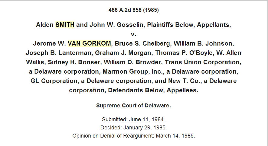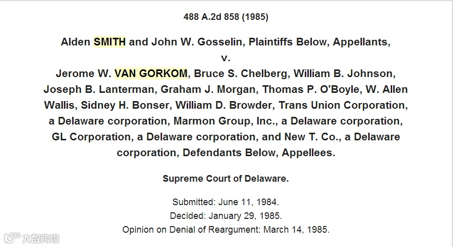 诚信概念在美国公司法领域的出现,是20世纪80年代之后的事。1984年,在Lewis v.Aronson案中,特拉华法院在关于商业判断规则的定义中首次引入了诚信概念。1985年,特拉华州发生了Smith v.Van Gorkom案,该案中,特拉华法院判决违反注意义务的公司董事对公司股东承担赔偿责任。该判决引起了社会广泛的争论和批评。批评者认为该判决创造了一种有害决策的风险文化,阻碍了适格人选担当董事职责。