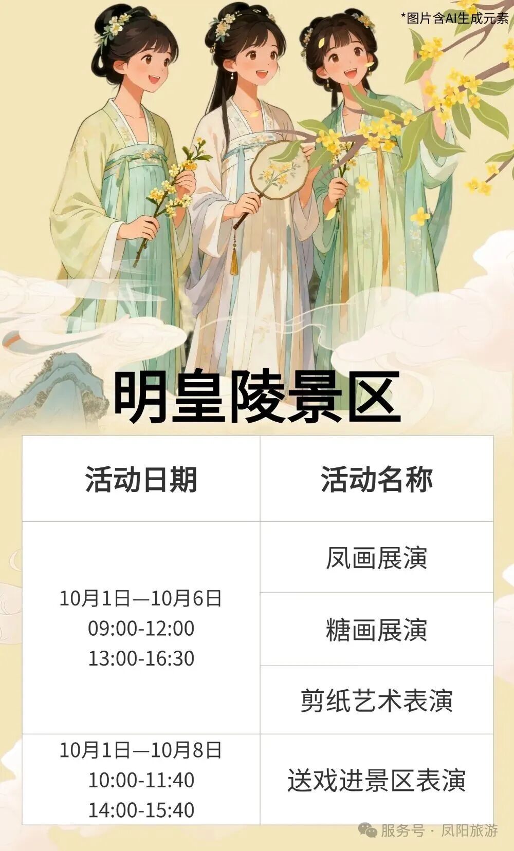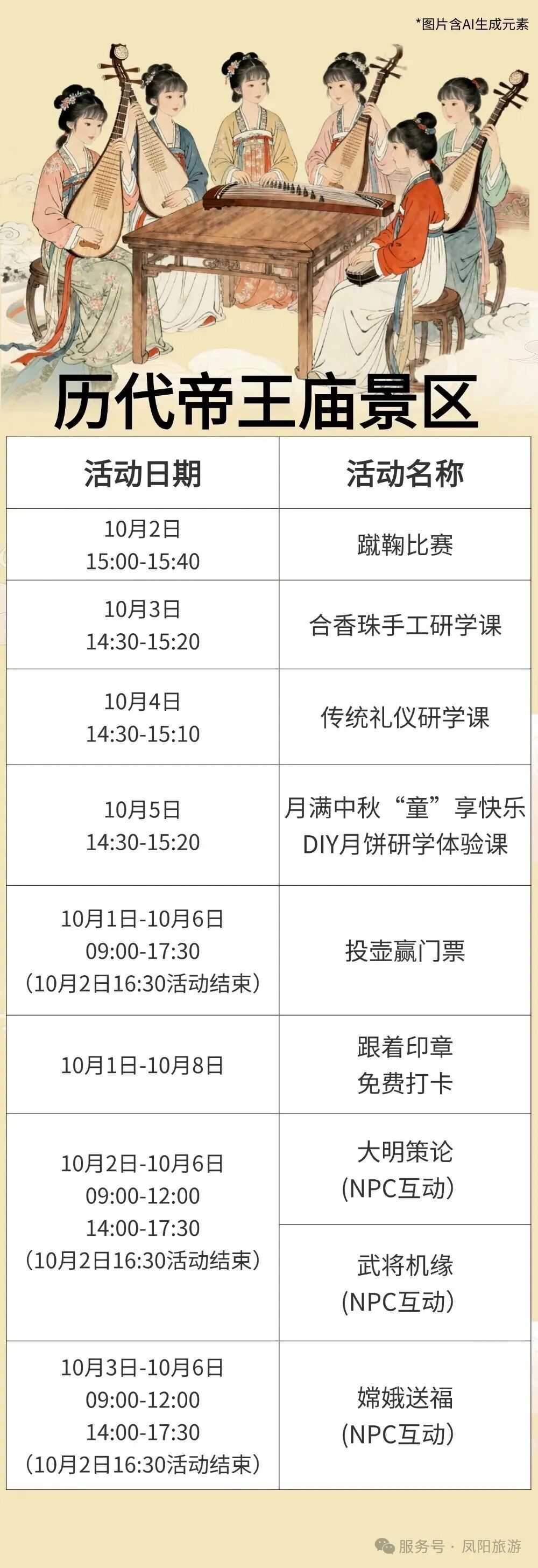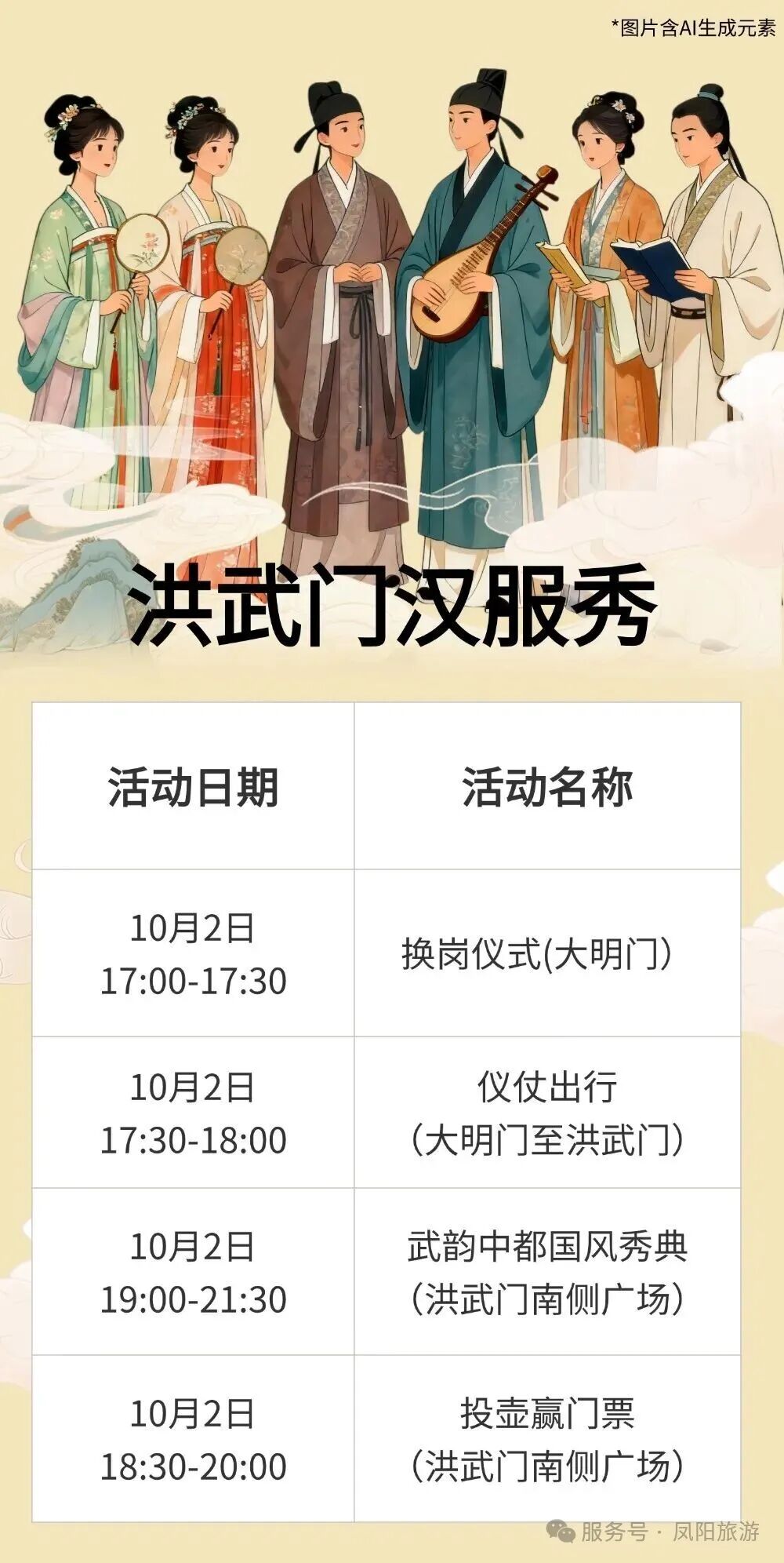 (3)10月1日—8日着明制汉服可免费参观(钟楼、历代帝王庙、开国功臣庙、中都城隍庙)。