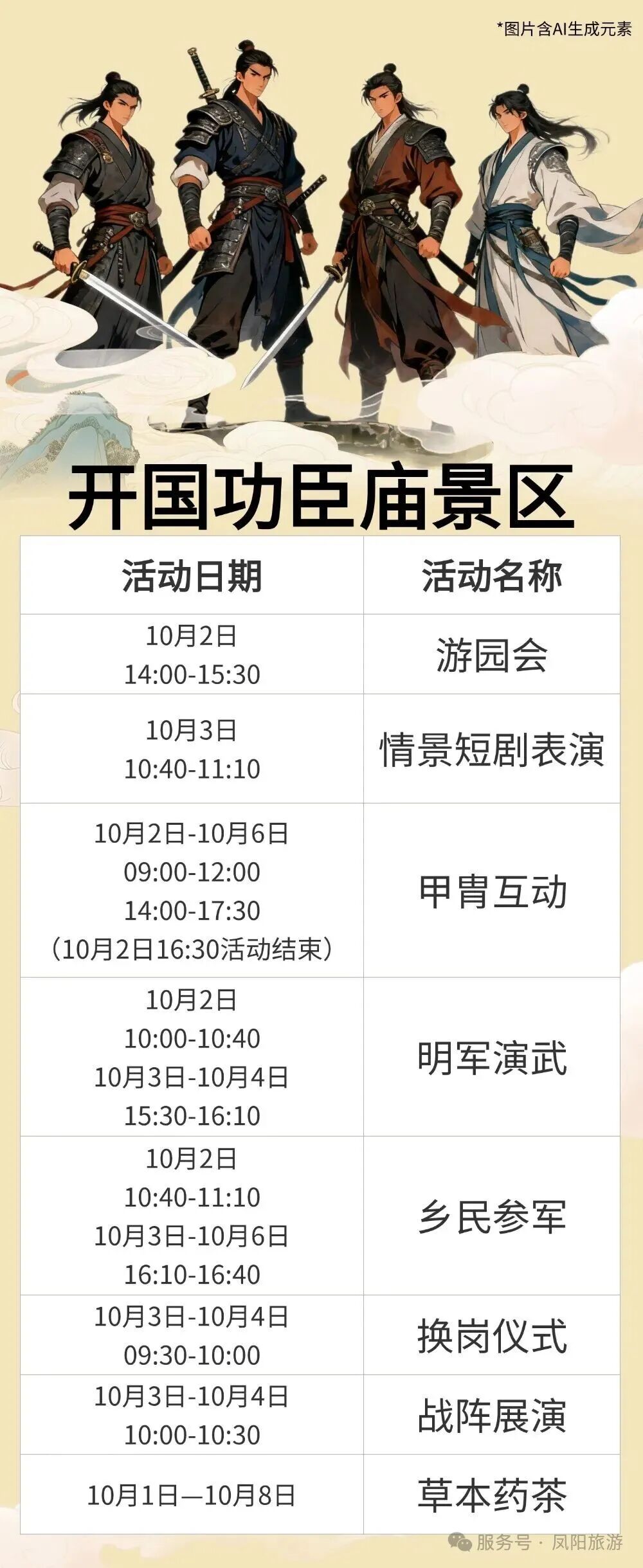 (2)10月1日—8日单点门票半价优惠(钟楼、历代帝王庙、开国功臣庙、中都城隍庙)。