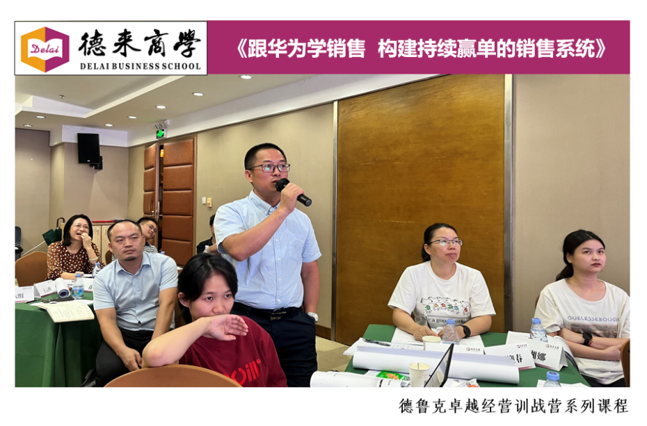 《构建持续赢单的销售系统》课程暨德鲁克卓越经营训战营的第一门课程于7月26-27日隆重登场, 由张阳老师主讲。张老师作为资深讲师,有13年华为经历。在华为期间多次获得杰出个人、优秀团队、总裁嘉奖令等奖项,丰富的一线业务管理经验,大型项目管理经验,讲课深入浅出, 引人入胜!