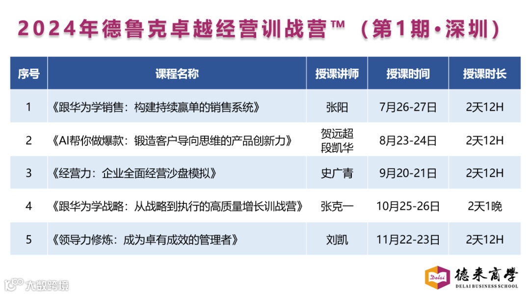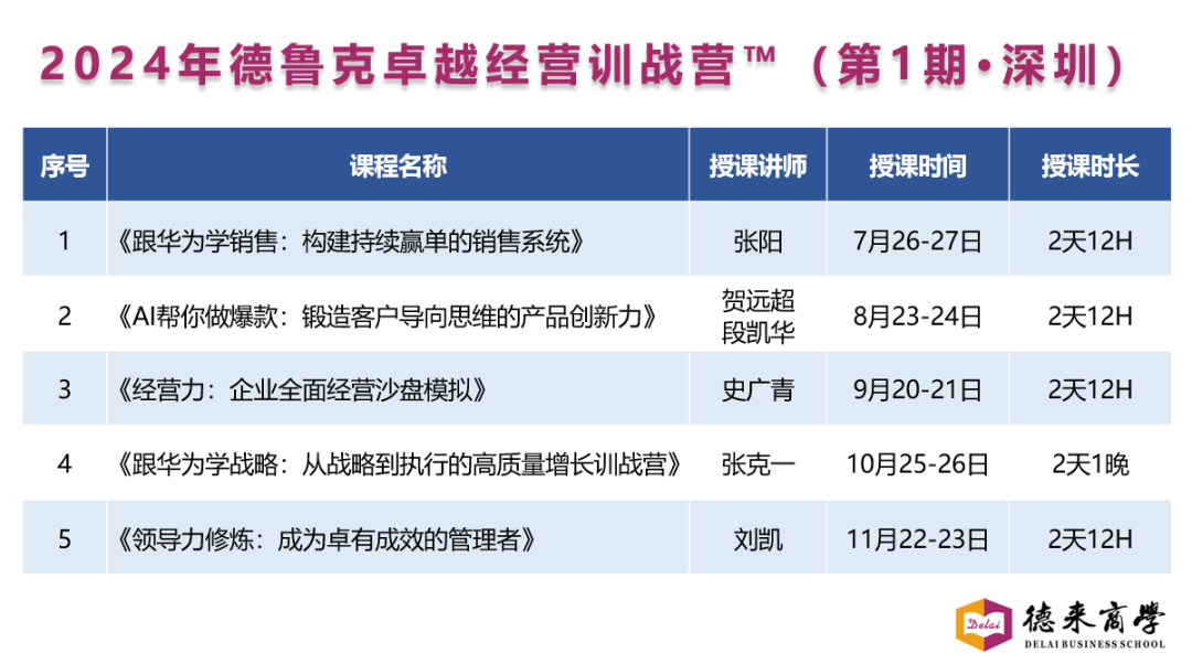 德来商学始于初心,臻于匠心,基于战略力、营销力、创新力、经营力、领导力的“五力模型”,精心打磨德鲁克卓越经营训战营,为企业提供有价值的服务!