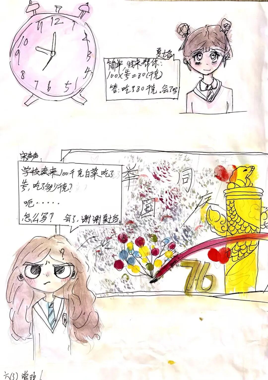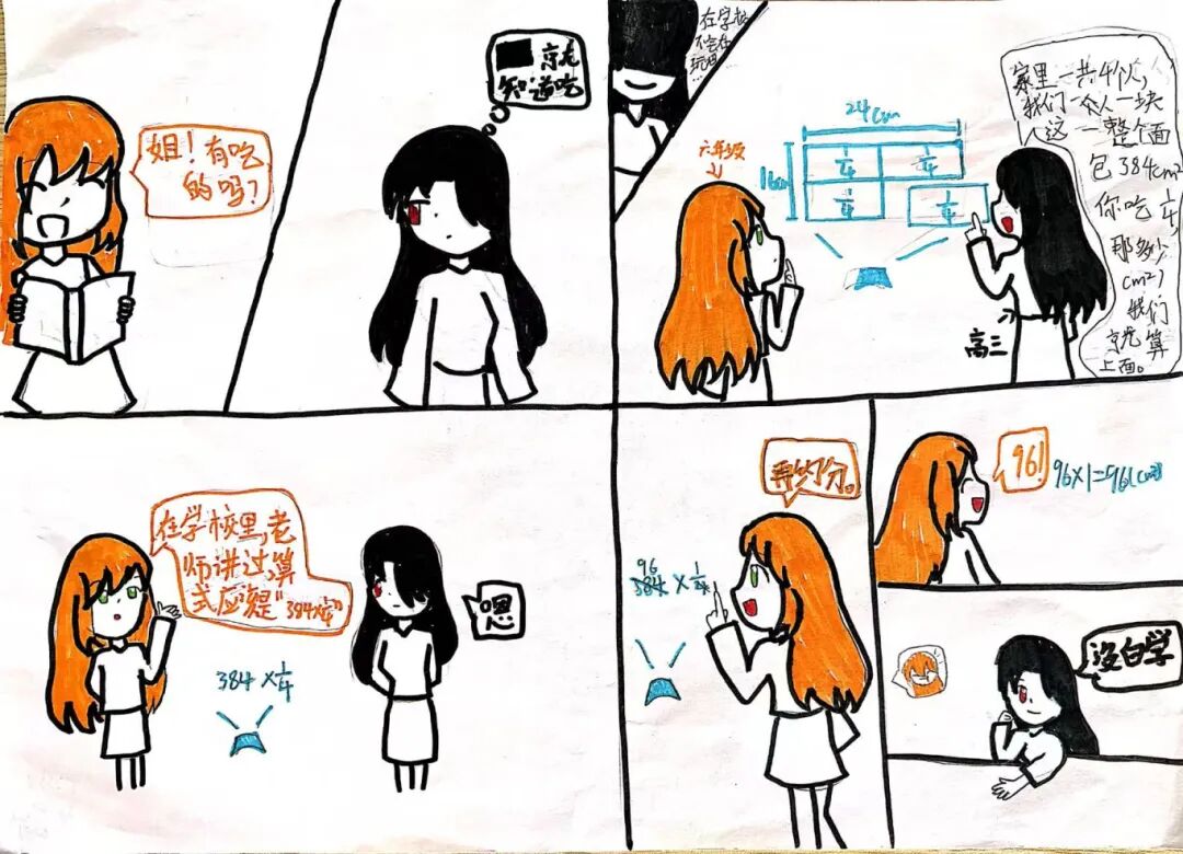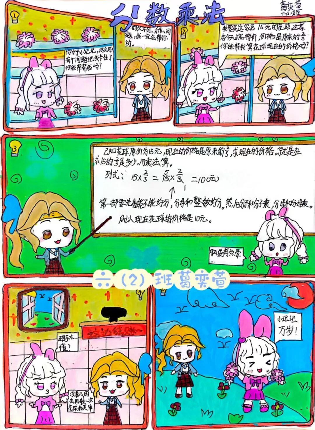With life as the background, use brushes to tell wonderful stories of fraction multiplication and division. Create a mathematical comic to show your mathematical wisdom in discovering and solving problems in a fascinating way.