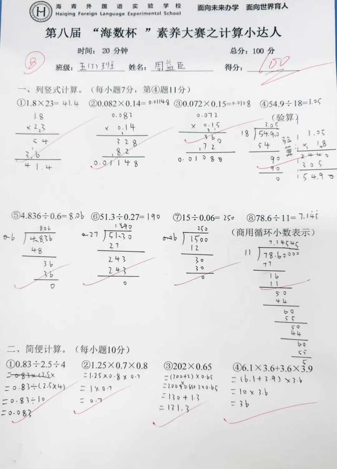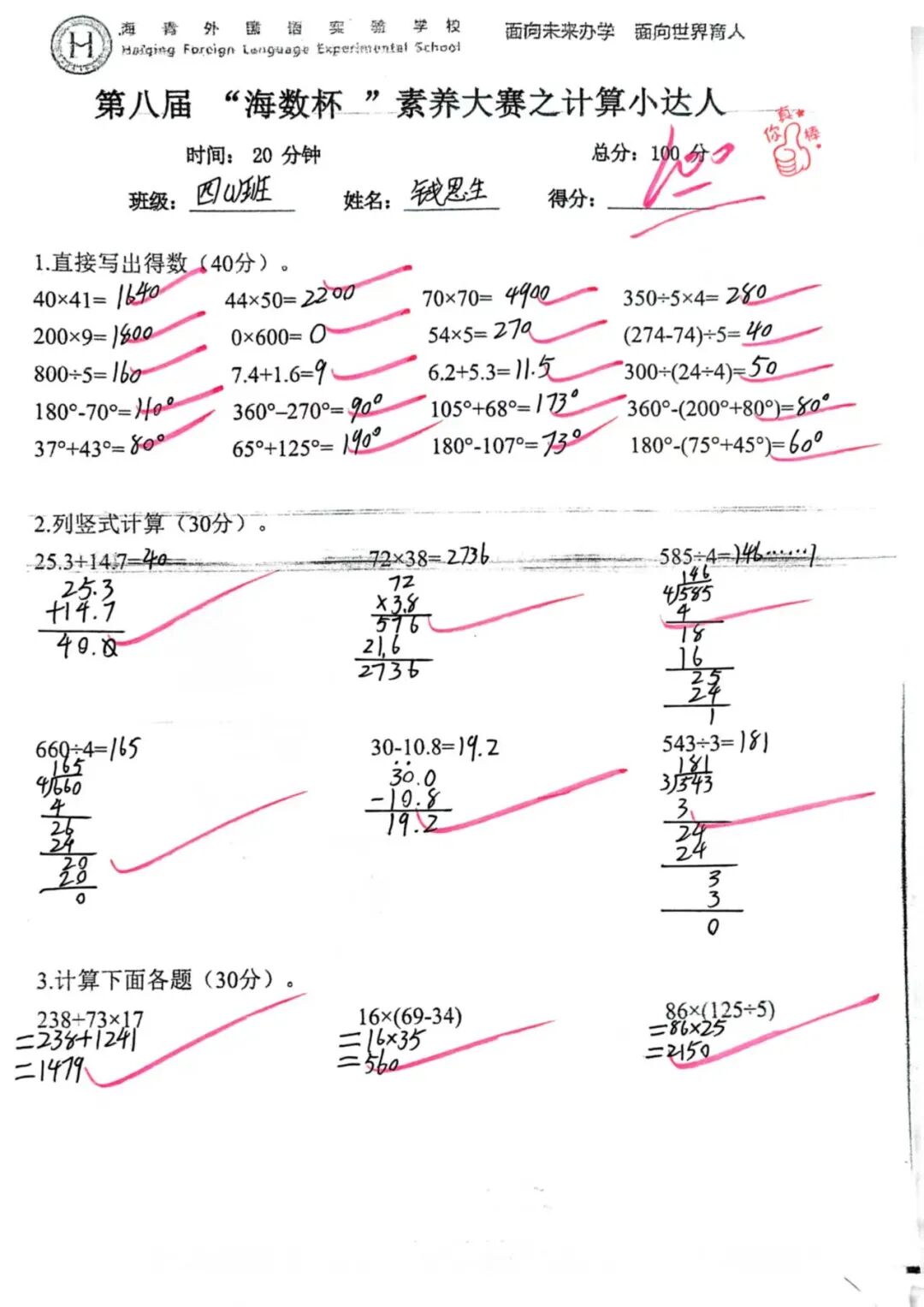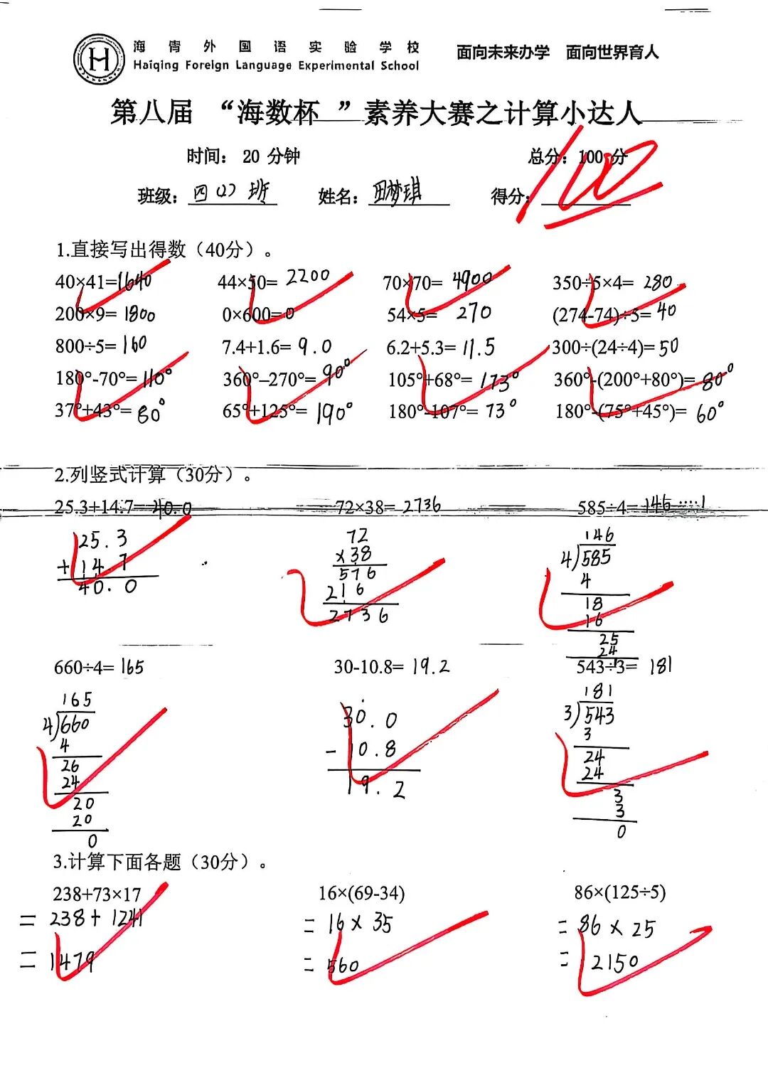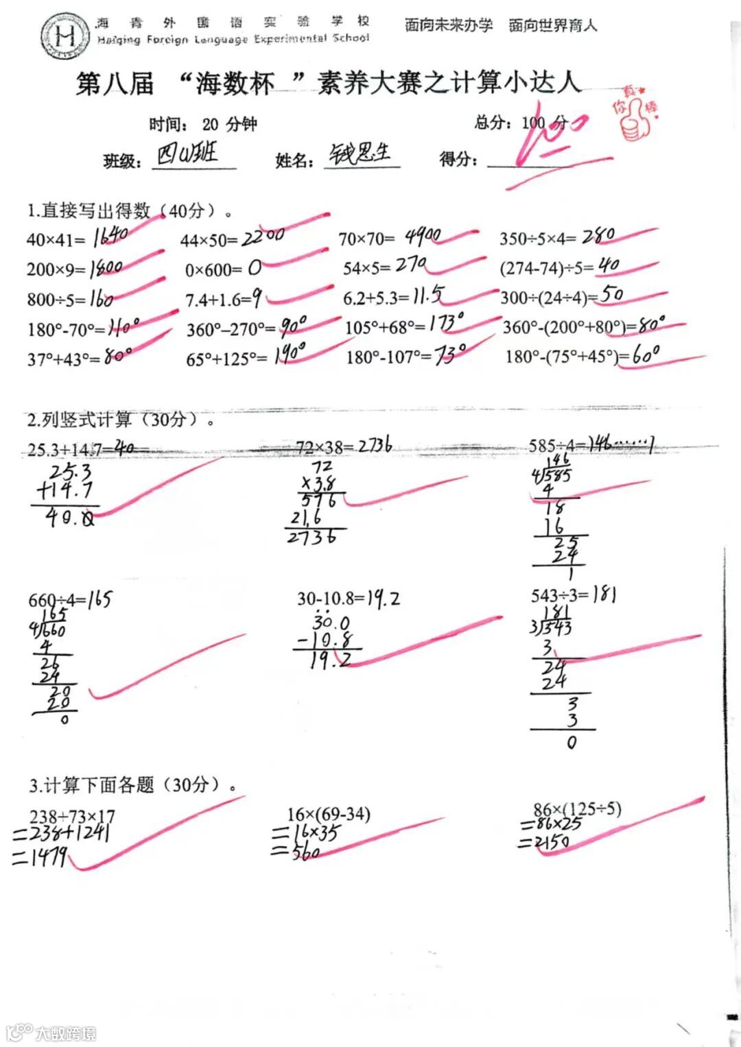 The "Calculation Prodigy" competition officially started! This is by no means an ordinary event, but a "Speed and Passion" in the mathematical world! Students will show their skills and demonstrate fast and accurate calculation ability in the carefully designed mathematical problems. These questions not only challenge the children's mathematical foundation, but also skillfully integrate interesting elements, allowing the children to learn in laughter and gain fruitful results in growth.