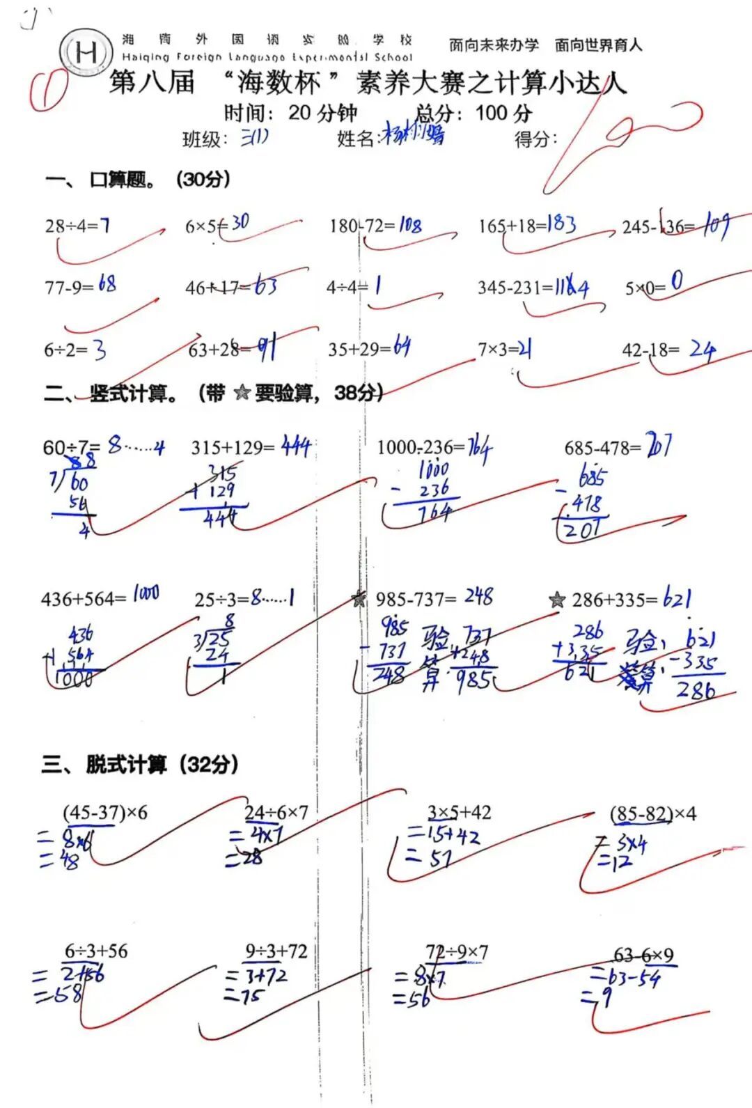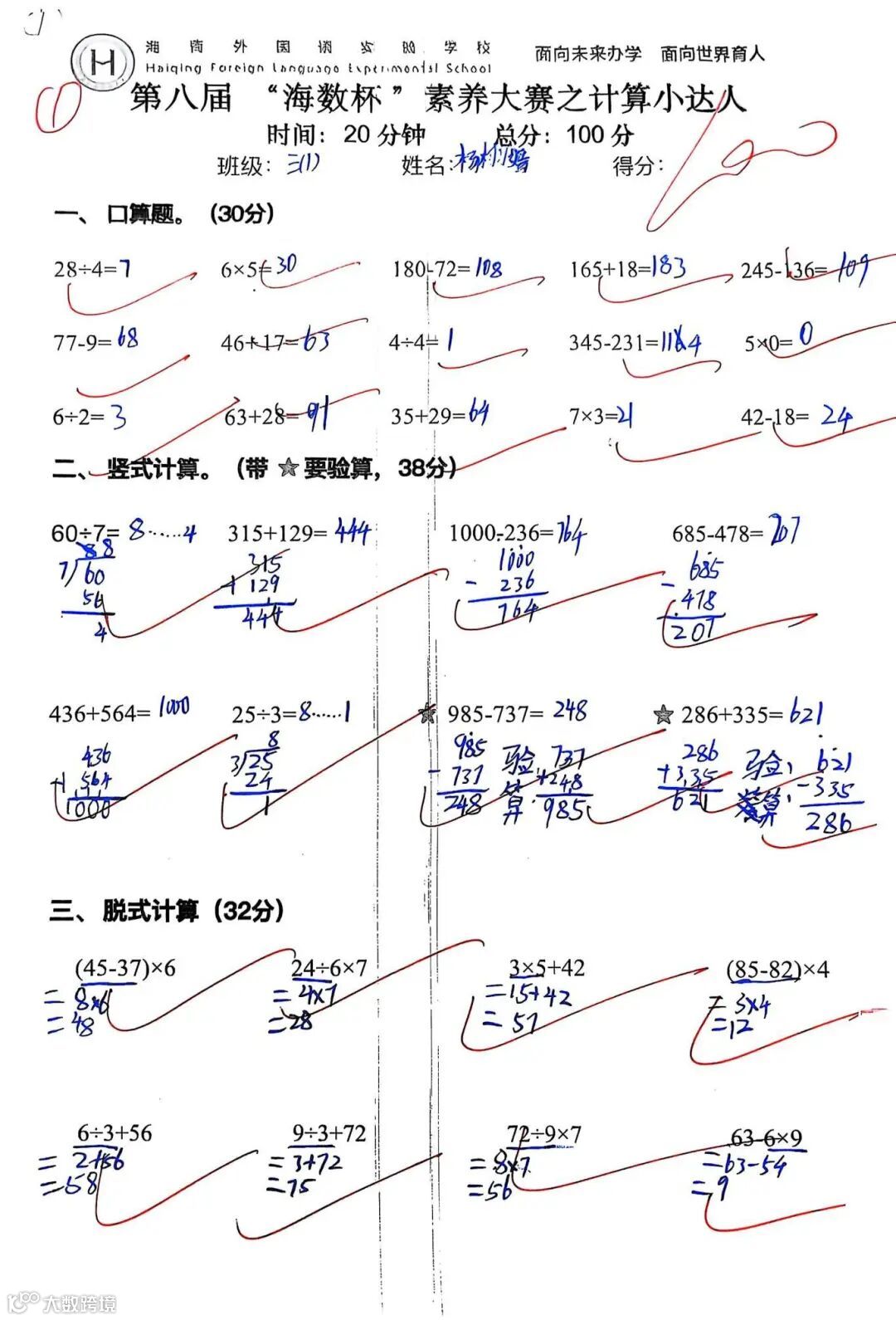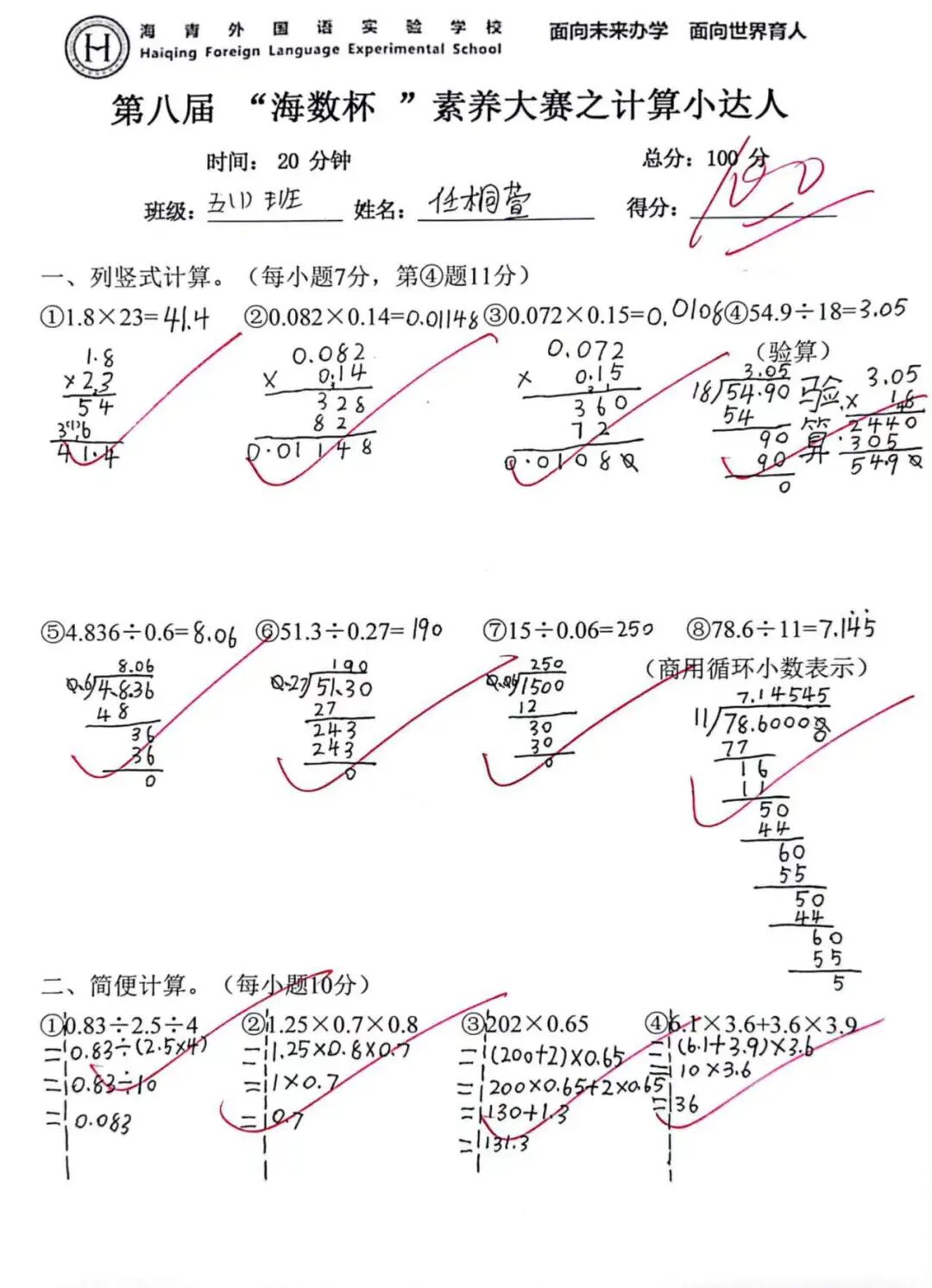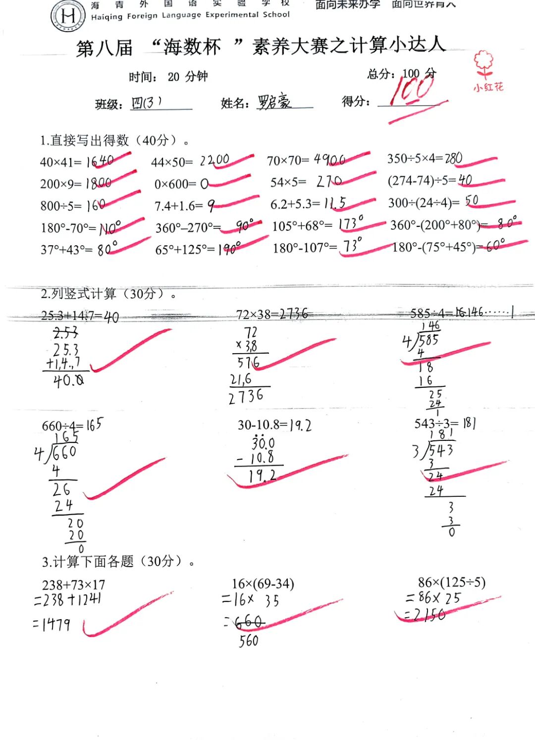 The "Calculation Prodigy" competition officially started! This is by no means an ordinary event, but a "Speed and Passion" in the mathematical world! Students will show their skills and demonstrate fast and accurate calculation ability in the carefully designed mathematical problems. These questions not only challenge the children's mathematical foundation, but also skillfully integrate interesting elements, allowing the children to learn in laughter and gain fruitful results in growth.