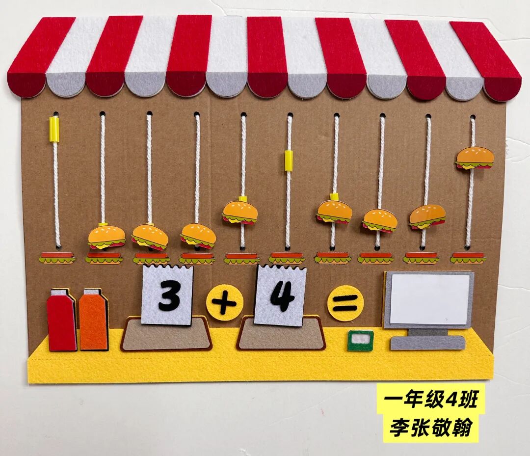 学生与家长共同制作精美的“分与合”主题小书签,可以用彩纸剪出数字的形状,背后写上对应的加减算式;或者动手做一个“10以内加减法”趣味转盘,用卡纸、纽扣和双脚钉组合而成,轻轻一转,算式与答案就在动态中相遇。也可以尝试制作一串小风铃,每片铃片上标注不同的数字或符号,挂在窗边,风中摇曳时仿佛知识也在轻轻碰撞。让抽象的数学概念在指尖变得可触可感,在游戏中巩固计算能力,既培养孩子的动手创造力和观察能力,也让学习成为一种看得见、摸得着、听得到的愉悦体验。