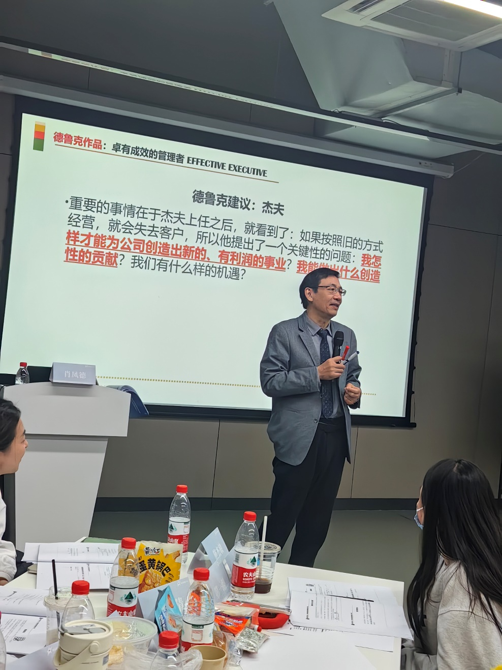 2024年,我已是个创业小兵,后疫情时代、内外部环境更残酷、AI等新技术层出不穷、消费结构调整……诸多挑战,我们又碰到一起。于是,我也很荣幸的在今年3月份正式成为德鲁克思想研究院杭州分院院长。并且,结合沙盘、案例、翻转课堂、行动学习等方式,升级了一系列更符合当下企业管理需求的产品,结合不同的管理阶段和需求,在内容和商务上均做了更针对性的调整。一经推出,响应纷纷。德来商学推出的“德鲁克卓越经营训战营”再次受到客户好评、市场追捧。正巧12月份在杭州某儿童摄影公司就有2天培训《卓有成效的管理者》,于是有幸完整记录了自身的肖老师深入浅出的分享。课后,我和老师意犹未尽,又结合课程和学员的水平,在课程基础上,衍生出了“贡献梳理表”、“企业决策风格自测”、“有效决策对照图”、“用人分析表”等工具,相信能够进一步将德鲁克经典理论更好的内化落地进不同企业中,实现业务增长。当然,学习不是一蹴而就,更需要持续实践。我会持续输出德鲁克学习心得,也希望能有更多伙伴加入进学习中,一起探讨、成长。
