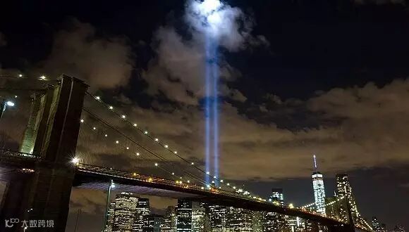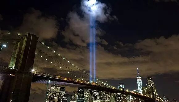 美国东部时间9月11日晚,纽约曼哈顿下城新世贸大厦向天空发射出两束巨大的蓝色光柱,划破夜空直至天际,代表在16年前倒塌的双子大楼。当天,纽约举行了全美规模最大的9·11纪念活动。
