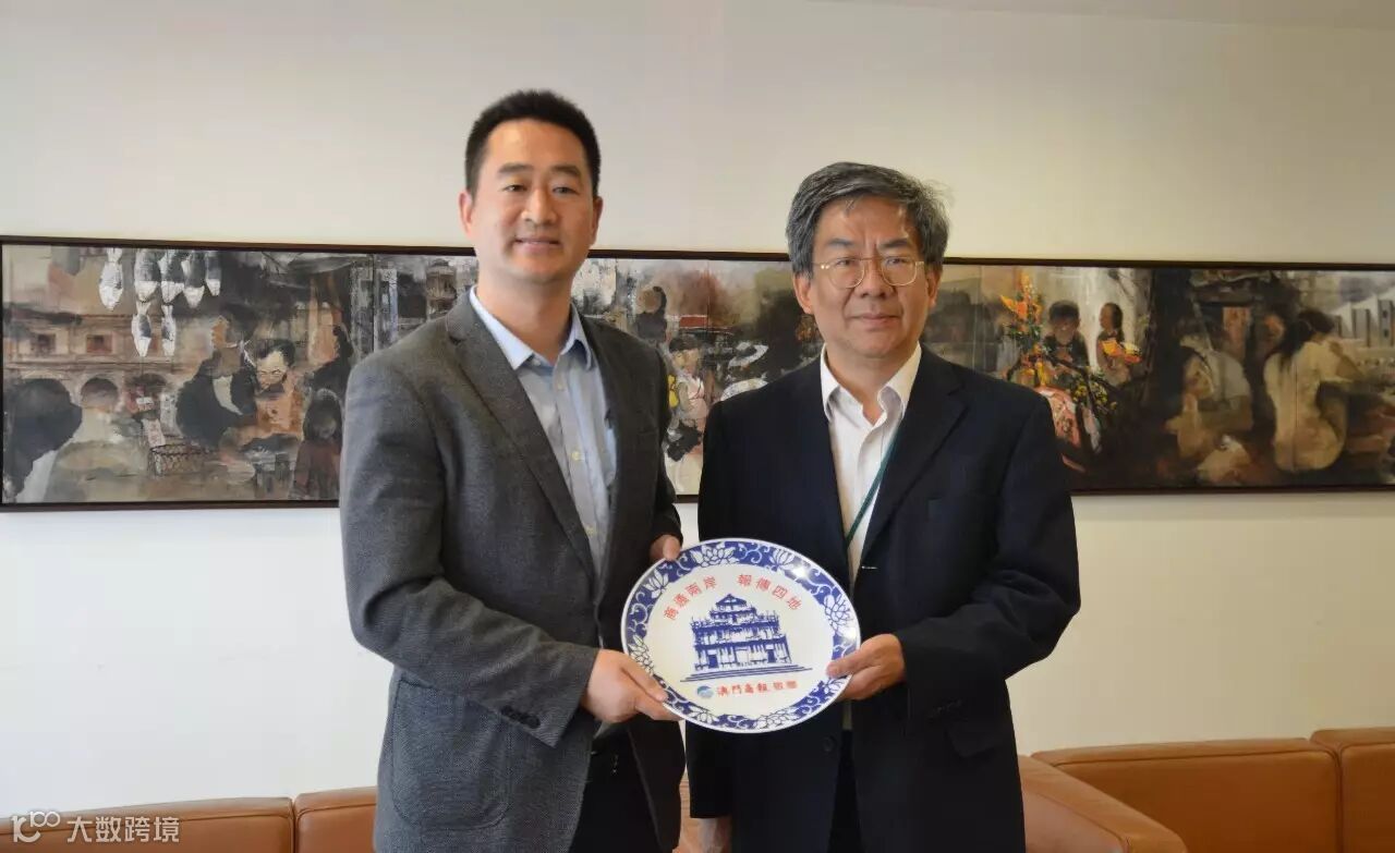 澳門商報社長朱海生代表本報向特區政府文化局致贈紀念品