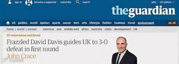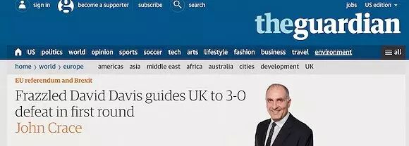 很多媒体都以“戴维斯惨败”或“戴维斯狼狈不堪”为标题报道首轮脱欧谈判。