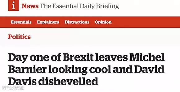 七个小时后,两个人重新露面,就首次会谈举行了新闻发布会,新的迹象表明,戴维斯肩负的英国脱欧谈判开局很不顺利:多家媒体描述称,发布会上的戴维斯显得非常疲惫,红扑扑的脸上还沁着汗水,头发一团糟。而他旁边的巴尼耶一如既往的冷静,保持着优雅的风度。