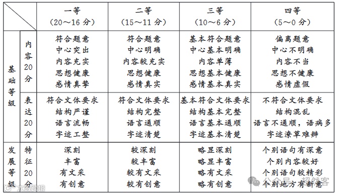 (四)套作或文体不明确的,酌情扣分;抄袭的,“基础等级”在第四等之内评分,“发展等级”不给分。