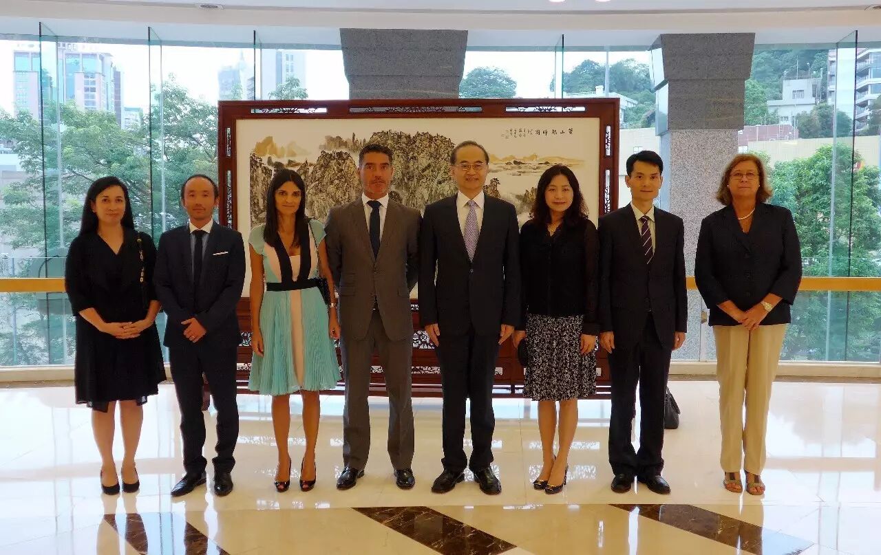 8月10日,外交部驻澳门公署特派员叶大波和夫人邱薇薇参赞在公署会见葡萄牙驻澳门总领事薛雷诺夫妇,双方在友好气氛中探讨了中葡关系、澳门与葡萄牙交流合作等议题。外交公署政策研究室主任冉波参赞、葡萄牙副总领事里卡多夫妇和经商参赞布尼法西亚女士等参加了会见。