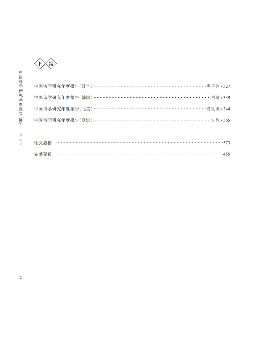 2023年度欧洲中国古典诗学研究热度较去年有所提升,共产生论文6篇,书评1篇,著作1部,论文集1部,译著2部,这些研究成果呈现出两大特点——中国学术国际话语权的提升和欧洲学界对国内传统观点的挑战。